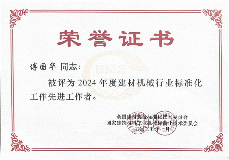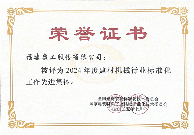 I rossessionen afholdt på samme tid blev Quangong Machinery Co.,Ltd tildelt titlen "Advanced Collective in Standardization Work in the Building Materials Machinery Industry in 2024", og virksomhedens vicedirektør Fu Guohua blev tildelt titlen "Advanced Worker in Standardization Work in the Building Materials Machinery Industry" i 2020-industrien.