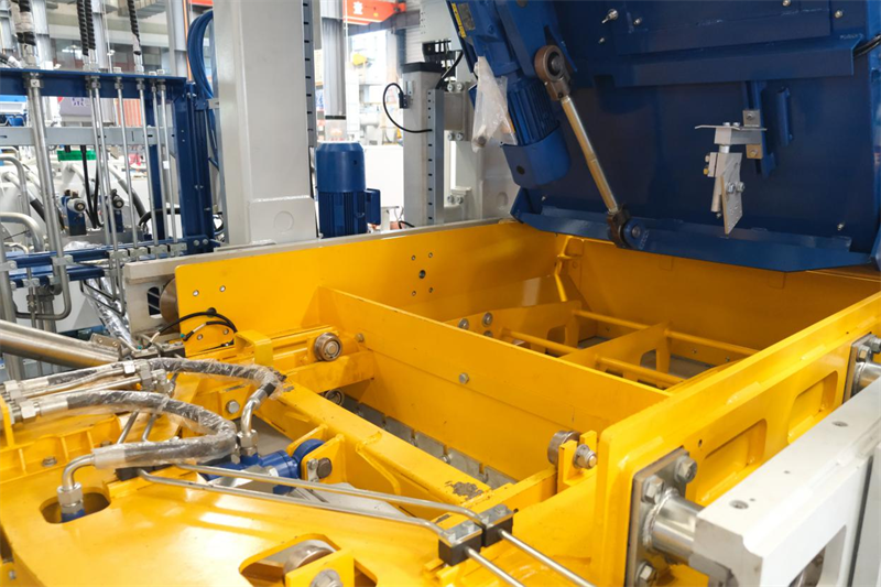 Udstyret med tryksensorer muliggør dette system præcis styring og sikrer stabilt tryk. Den hydraulisk drevne placeringsvogn sikrer hurtig og effektiv formpåfyldning.
