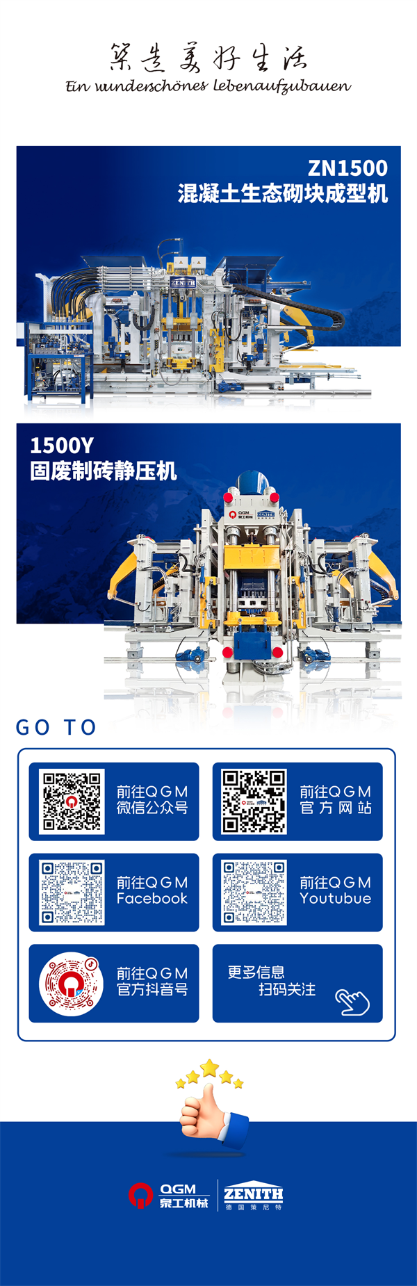 Som et førende mærke i den indenlandske murstensmaskineindustri har QGM konsekvent rangeret blandt de førende virksomheder i Quanzhou i mange år. Til dato har virksomheden sikret sig over 300 produktpatenter, hvoraf 21 er opfindelsespatenter godkendt af Statens Intellectual Property Office. I 2014 købte virksomheden fuldt ud Zenith, en verdenskendt tysk producent af pallefri murstensmaskiner med over 60 års historie, og lancerede officielt sin globale strategiske ekspansion. Ved fuldt ud at integrere avanceret tysk teknologi og udnytte sine årtiers produktionserfaring har QGM løbende fornyet og udviklet en række internationalt konkurrencedygtige high-end modeller. Disse produkter eksporteres til over 60 lande og regioner langs Bælte- og vejinitiativet, hvilket tjener stor anerkendelse på det globale marked.