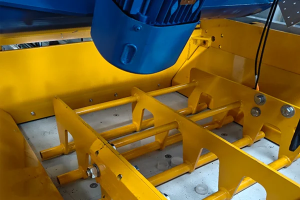 1Vibrationsborddesign Med 4 servomotorer for stærkere vibrationer og mere jævnt. Vibrationsreducerende enhed med airbag 4 airbags er placeret i hvert hjørne af vibrationsbordet for at reducere amplituden af vibrationer under vibration for at reducere vibrationsbordets mekaniske påvirkning på pallerne, hvilket reducerer pallernes skader under produktionen for at forbedre pallernes levetid.